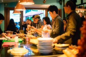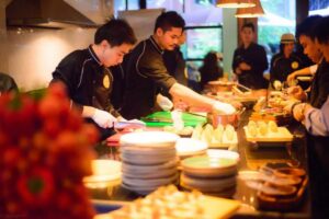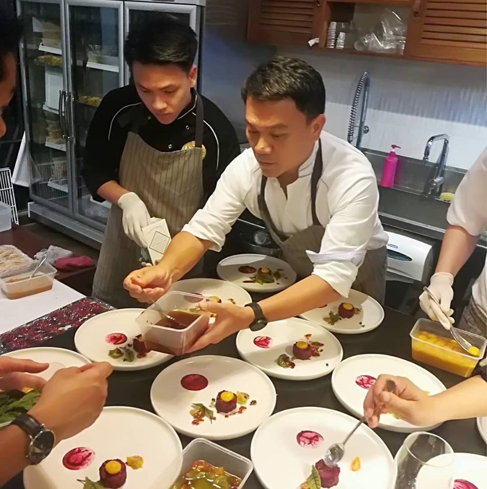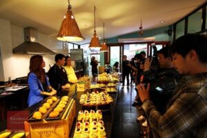 The origin of the name Pinn Food Society Co., Ltd. From left to right, “P-Peuy (Pae) with Pailin Phongphaibun from Yok Intertrade Co.,” “I-Ian (Ian) Phongthawat Chalerm Kittichai Top Chef in Thailand “,” N-Noy (Noi) Butsarinlap Adisorn from Wine Gallery (Chiang Mai) ”